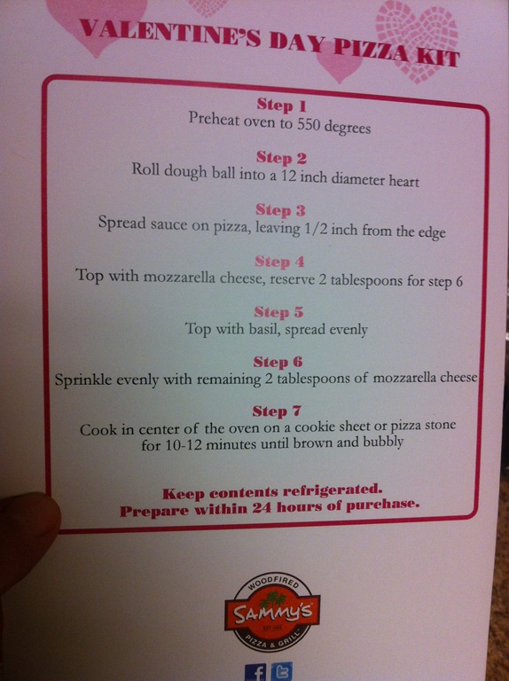 The second act of service was cooking a surprise dinner for him. It was lots of fun to put together! I bought a Valentine’s Day Pizza Kit from Sammy’s Woodfired pizza, Colby’s favorite pizzeria.