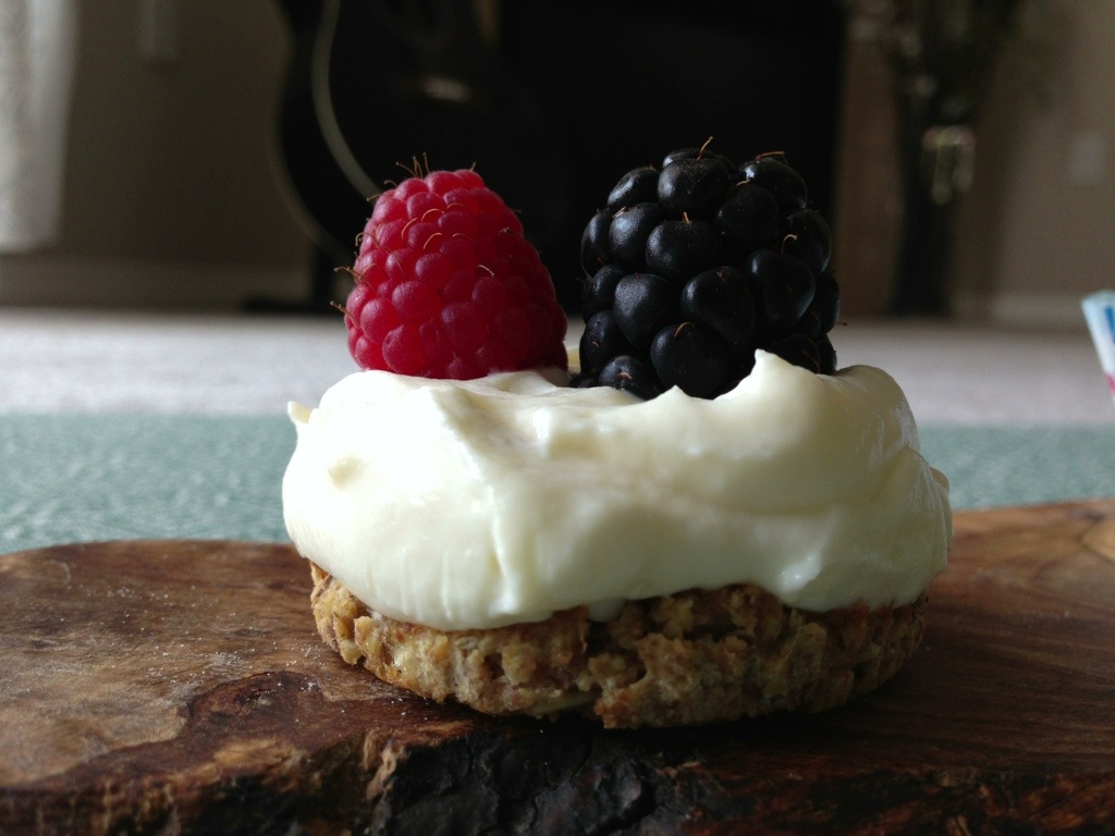 These mini cheesecake tarts are made without butter or oil. The filling is protein rich and the crust is gluten free!