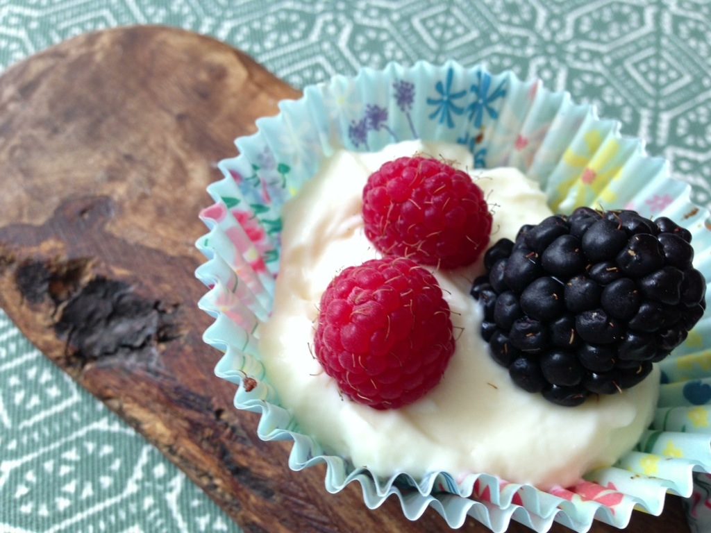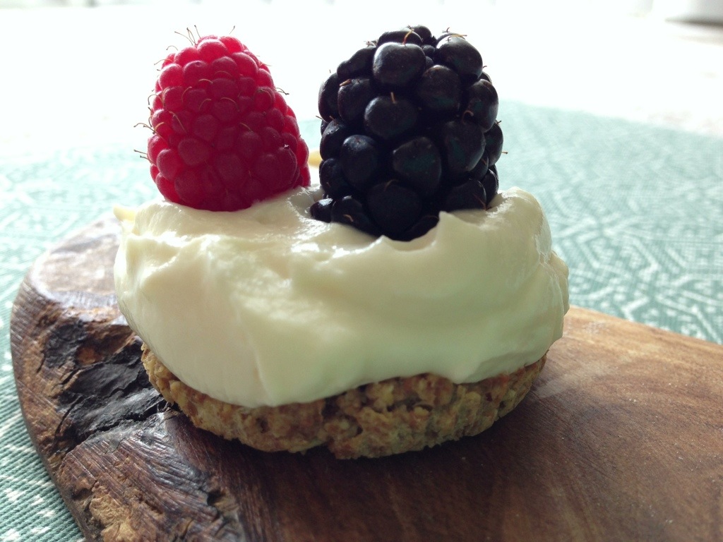 4. Allow the crusts to cool. Top each crust with filling and berries.