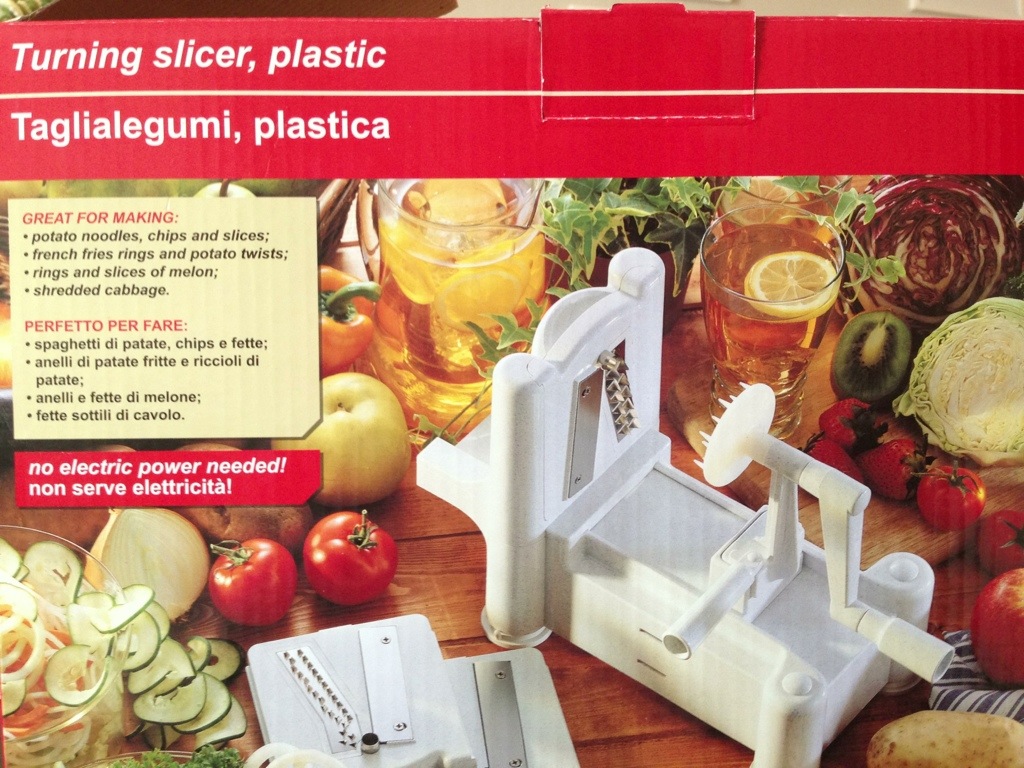 This gadget set me back $34.99 on amazon.com, but it’s well worth it for the sweet potato curly fries and zucchini noodles I can make with it!