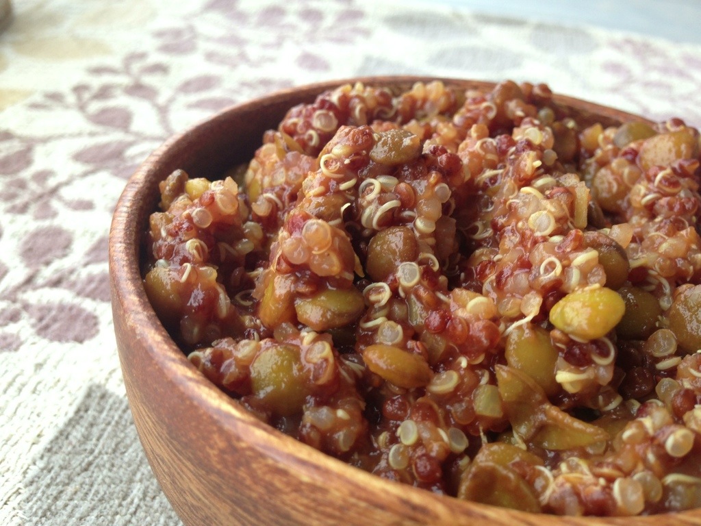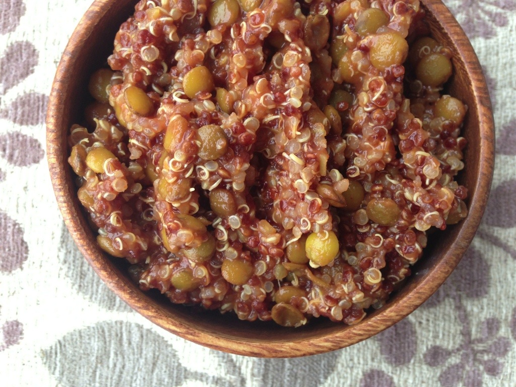 On this overcast day, I decided to make a satisfying vegetarian lunch bowl. The following recipe can be served solo or as a tasty and protein packed vegetarian side dish! The chewy quinoa and lentils have a wonderful texture, while the tomato, garlic, and cumin bring the dish to life with a big burst of flavor.