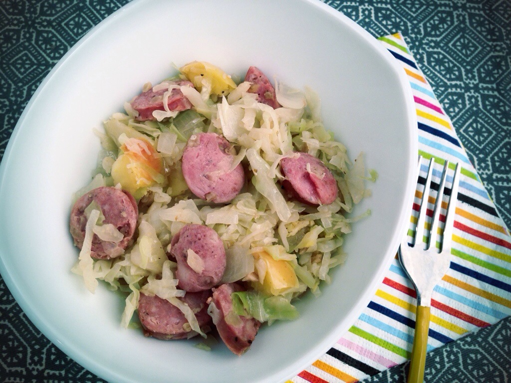 Are you ready for a hearty autumn meal? This will hit the spot and it’s really easy to make. Cabbage, apples, cider vinegar, and chicken sausage complement each other beautifully in this dish. The lightly sautéed shredded cabbage is reminiscent of noodles- gotta love that!