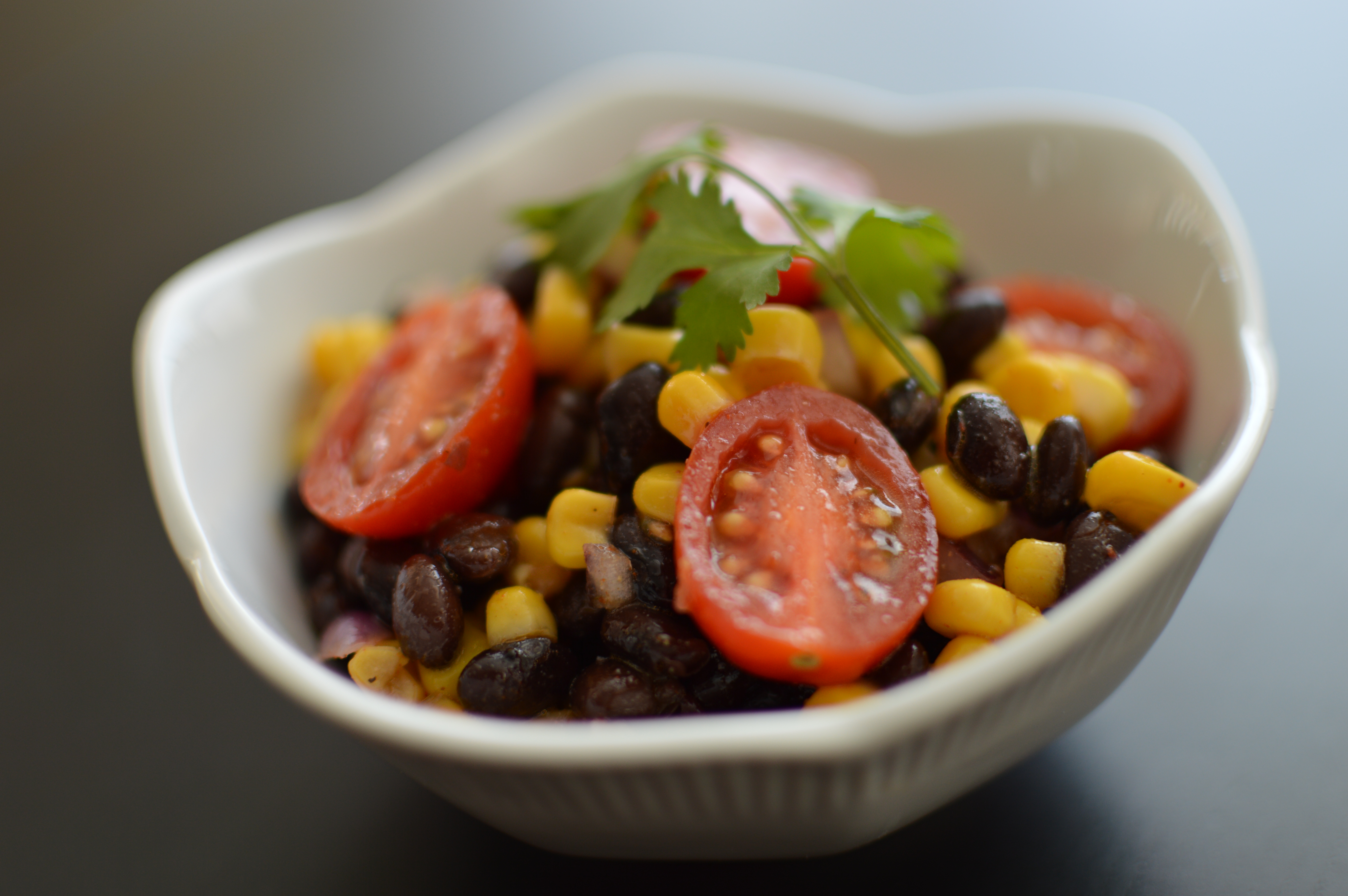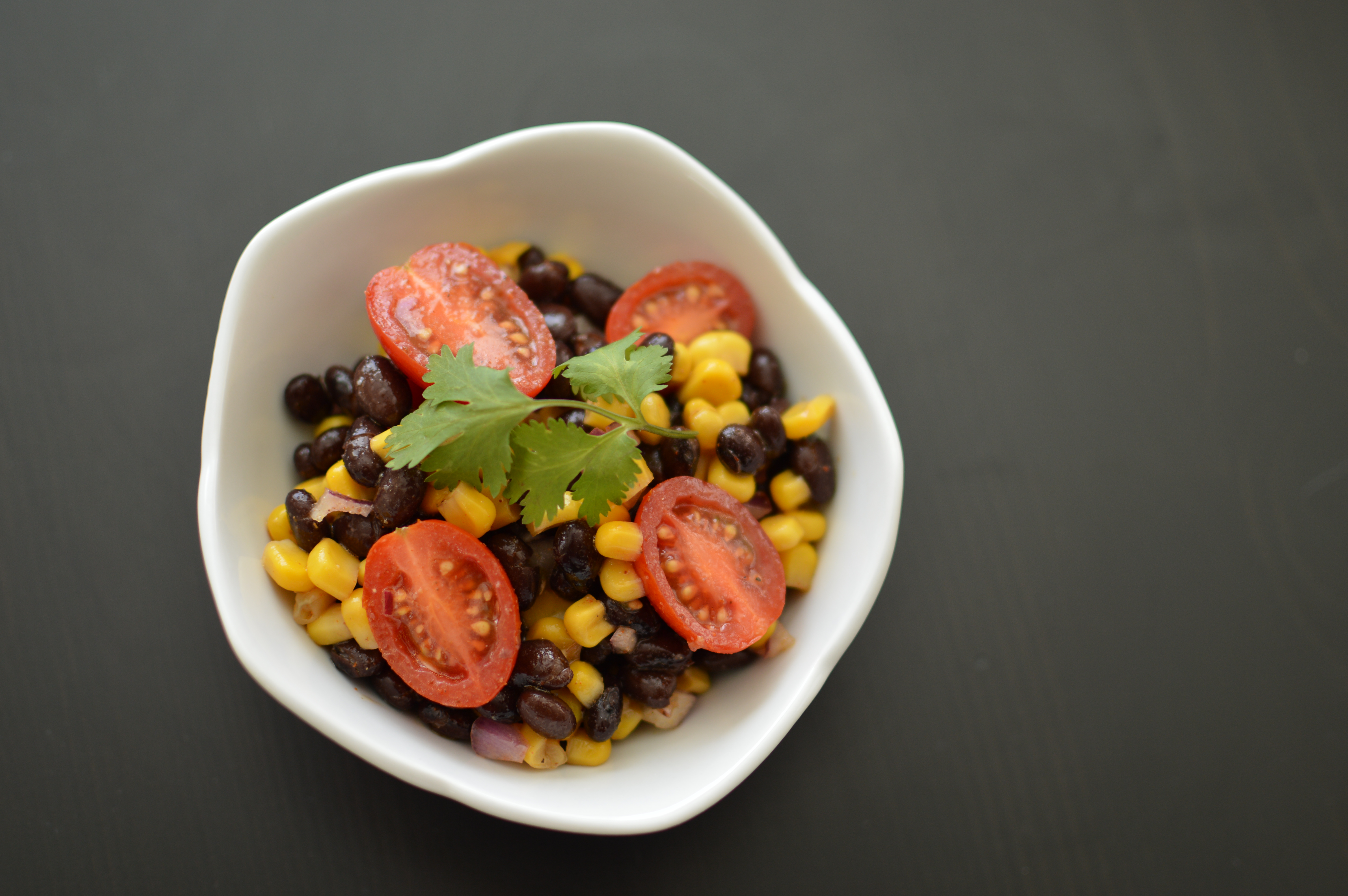 I love colorful salads, don’t you? This one is flavorful and easy to assemble. It tastes even better the next day! If you want to make it EVEN easier, try using salsa as the dressing instead of making your own vinaigrette.