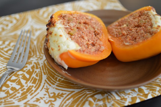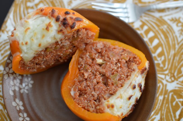 5. Distribute the meat and quinoa mixture evenly among the bell peppers, top each one with 1-2 oz shredded cheese, and broil until golden and bubbly.