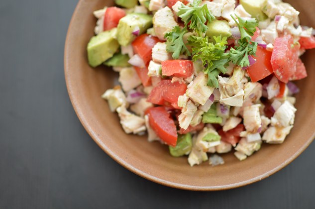 I used rotisserie chicken in my salad, but you could easily use poached or grilled chicken breast instead. I’ll bet this is good with a swirl of Greek yogurt or sour cream added in. Enjoy!