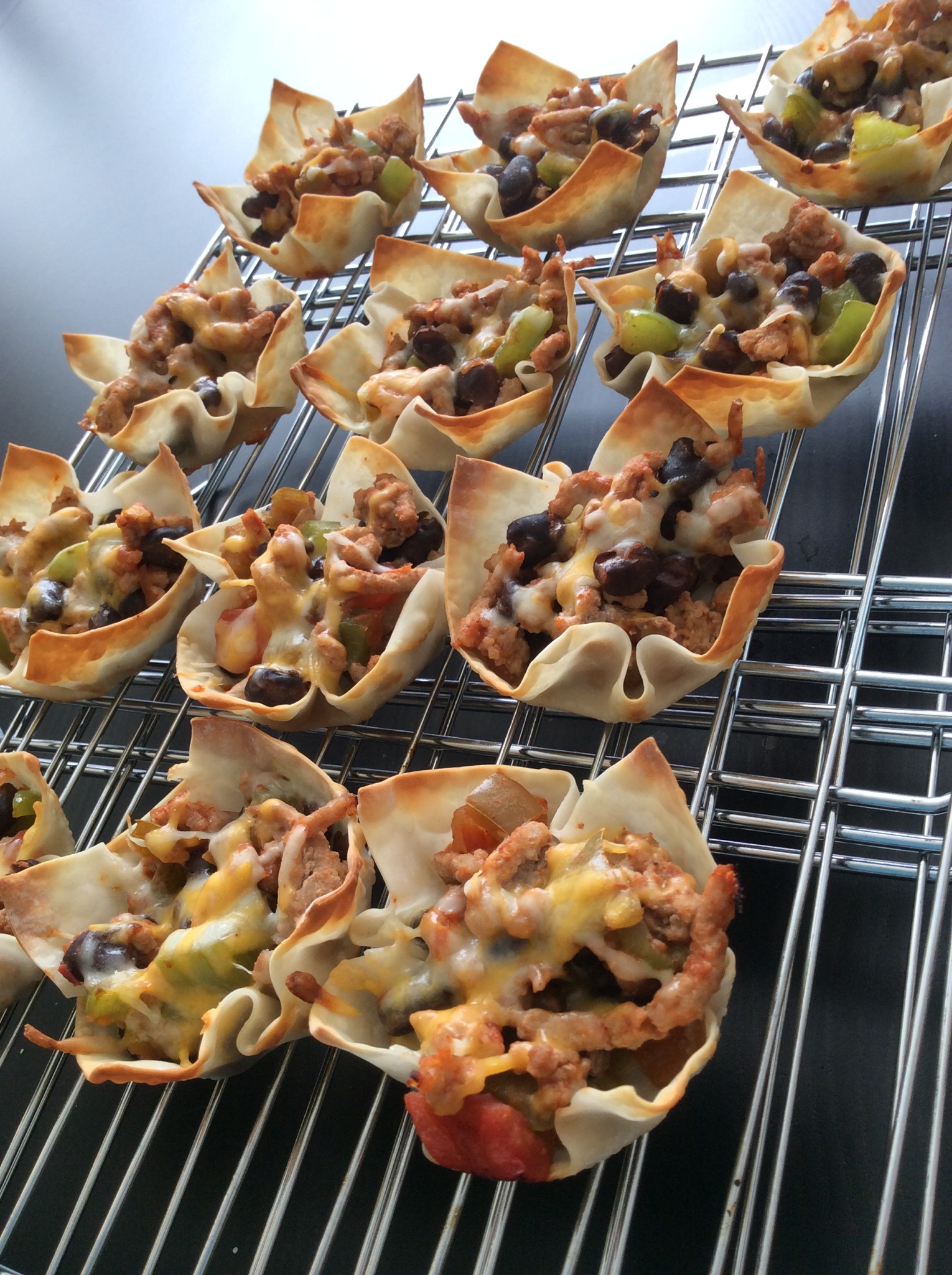 1. Brown the ground turkey in a 10″ skillet, breaking it into crumbles until no longer pink inside. Add taco seasoning and stir to thoroughly coat the turkey. Set the meat aside to cool.