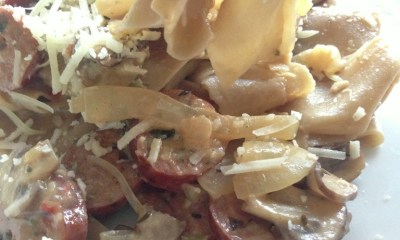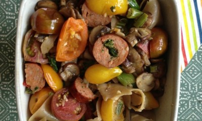 Garlic butter pasta sauce with tomatoes and mushrooms