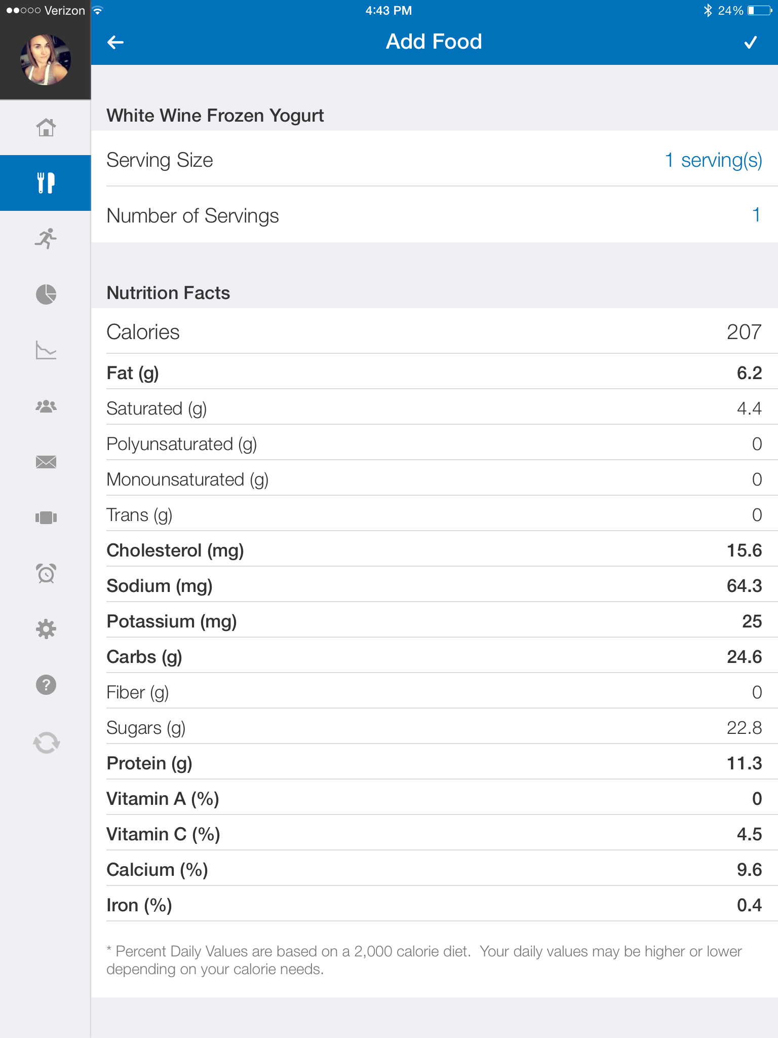 Because of overrun, or the increase in volume of the ice cream mixture, this recipe easily serves 8. Check out the nutrition facts below: